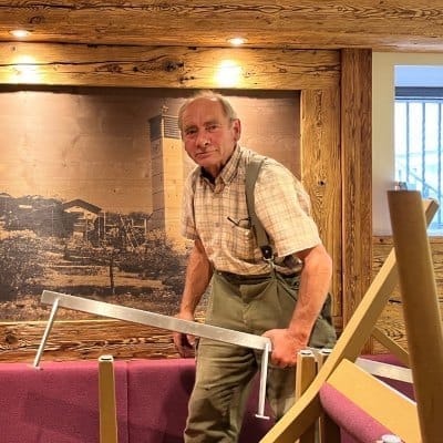 Heinz, der unermüdliche Handwerker und Helfer in baulichen Notlagen: die weite Fahrt aus Oberbayern hält Heinz nicht davon ab, seinen VW-Bus in eine fahrende Werkstatt umzuwandeln um damit seiner Tochter und dem RausZeit-Team in Törbel tatkräftigst unter die Arme zu greifen und dem Umbau im Laden einen massgebenden Schwung zu verleihen. Und auch wenn er dem Walliserdeutsch nicht ganz gewachsen ist, freut er sich über jede neue Begegnung im Dorf, das Miteinander "zünftig" Anpacken und danach das gesellige Beisammensein.